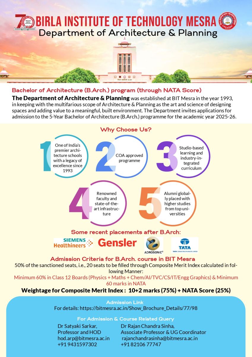 Admissions Open for B.Arch Programme through NATA Score