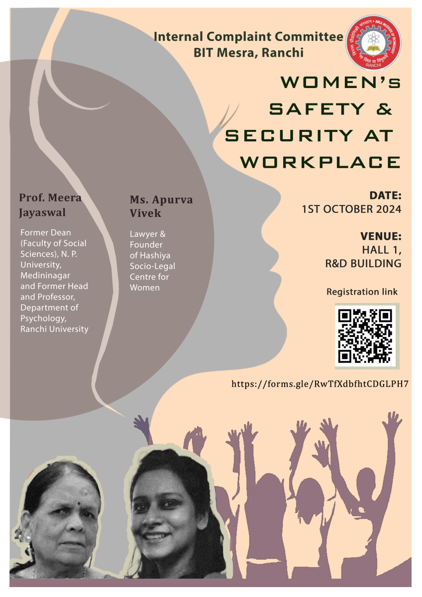 Pursuant to the University Grants Commission (Prevention, prohibition and redressal of sexual harassment of women employees and students in higher educational institutions) regulations, 2015, an Internal Complaint Committee (ICC) is constituted at BIT Mesra.