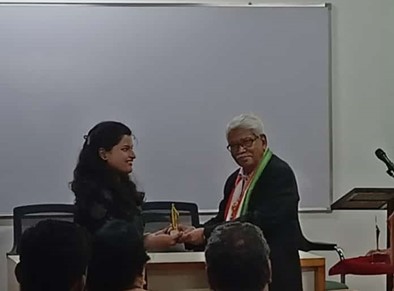 Ms. Soumi Chakraborty, M.Pharm final year student of Pharmaceutical Chemistry (MPH/10043/22) in the Department of Pharmaceutical Sciences and Technology, received the 3rd Prize in the Poster Session at “International Conference on Pharmacy & Healthcare” [NATCONPH 2023] organized by NSHM Institute of Health Sciences, NSHM Knowledge Campus, held at Kolkata, India from 29th – 30th September 2023.